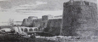 [8] Συγκριτική φωτογραφία από τη δυτική πλευρά του Κάστρου, 1912. Διακρίνεται ο μικρός προμαχώνας ο οποίος σώζεται σήμερα σε κακή κατάσταση.